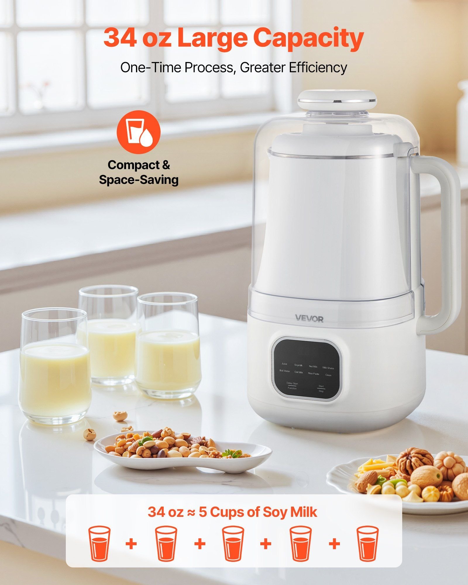 VEVOR 8-in-1 Nut Milk Maker, 34 oz Soy Milk Maker with 200W Blending, for Homemade Oat, Nut, Soy, Juice, Milkshake, Rice Cereal