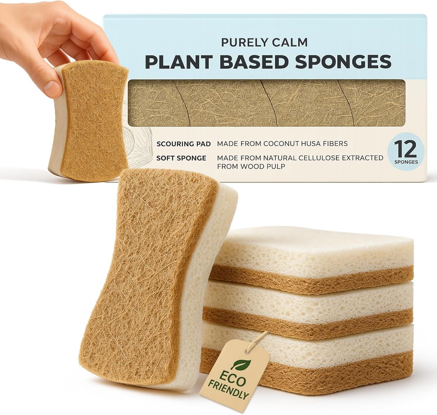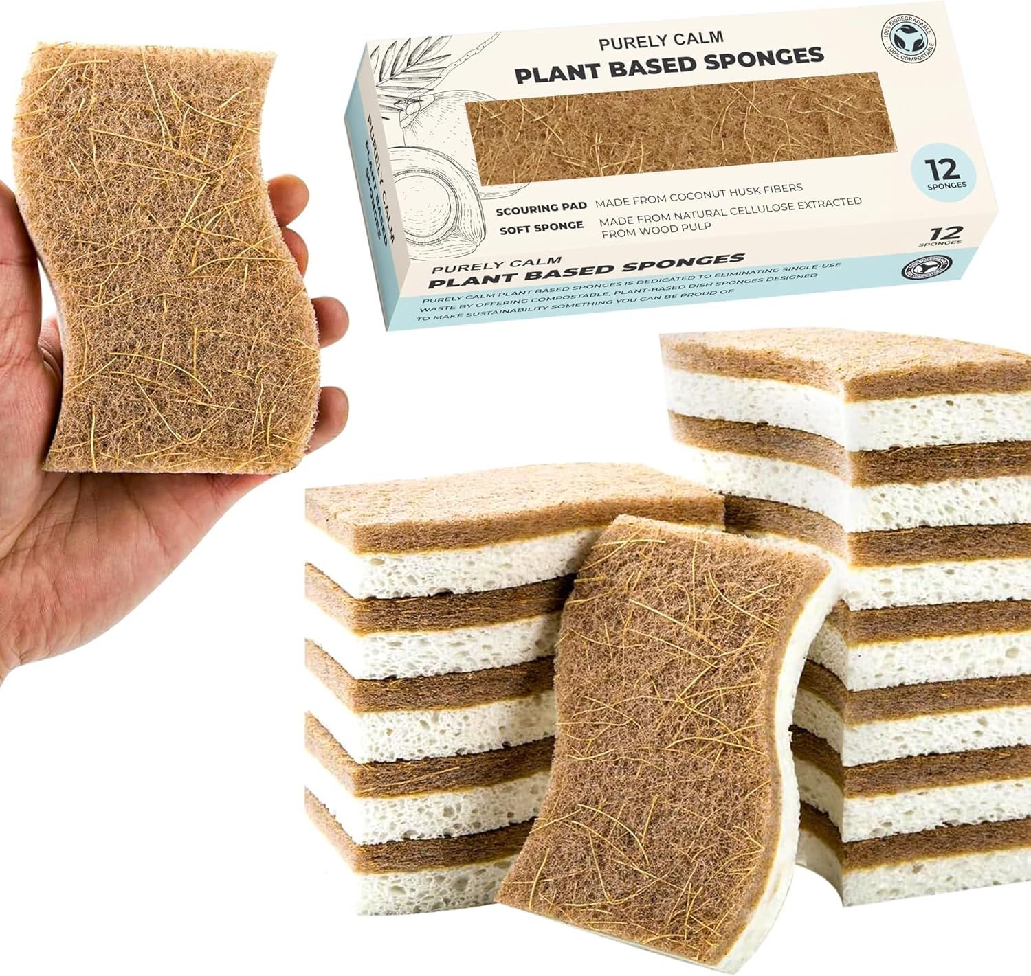 Plant Based Natural Sponge - Pack of 12 Cellulose Sponges, Safe on Non-Stick Cookware, Dual Sided Dish Sponge for Washing Dishes Plant Based Natural Sponge - Pack of 12 Cellulose Sponges, Safe on Non-Stick Cookware, Dual Sided Dish Sponge for Washing Dishes Plant Based Natural Sponge - Pack of 12 Cellulose Sponges, Safe on Non-Stick Cookware, Dual Sided Dish Sponge for Washing Dishes