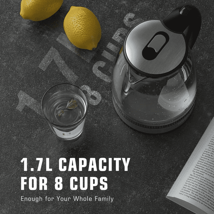 Elegant Design: Beautifully crafted from high-quality, scratch-resistant borosilicate glass with a stylish blue LED light around the rim, providing a visual delight while boiling water.