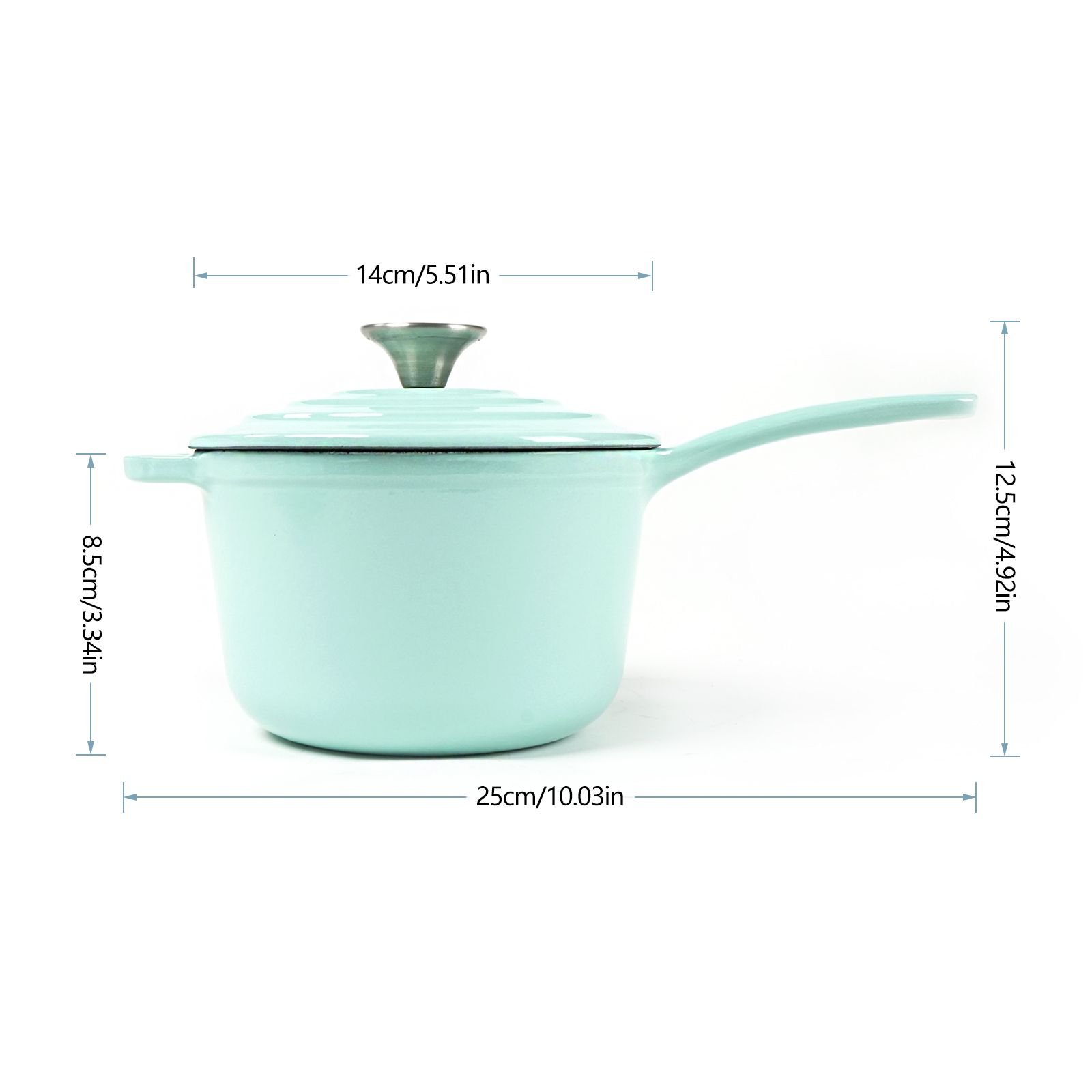 HAWOK Enameled Cast Iron Mini Saucepan, 1QT Saucepan with Lid and Long Handle, Green HAWOK Enameled Cast Iron Mini Saucepan, 1QT Saucepan with Lid and Long Handle, Green HAWOK Enameled Cast Iron Mini Saucepan, 1QT Saucepan with Lid and Long Handle, Green